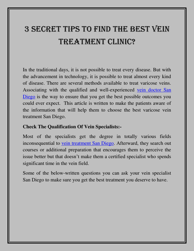 3 Secret Tips To Find The Best Vein Treatment Clinic